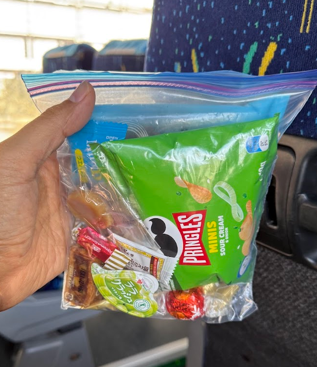 北海道のお医者様の奥様からは、お菓子の詰め合わせをいただきました。「ワインをご馳走になったから」とのこと♪ ホテルで朝食をとらないでいるので、バスの中で朝食がわりにおいしくいただきました♪ 日本のお菓子の美味しさが、海外に来ると身にしみます♪