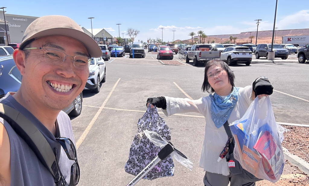 アメリカを代表するスーパーのウォルマート。ここで、30分の自由時間を「与えられた」ので、お土産を買うことに♪ アメリカで有名なチョコレートブランドの、ギラデリや、アメリカ限定のオレオなどを大量購入♪ 世界最大のスーパーのウォルマートを、本当はじっくり研究したかったのですが、たった30分だと、目的の商品を買うので精一杯。買い物のあとはゴミ拾いです♪