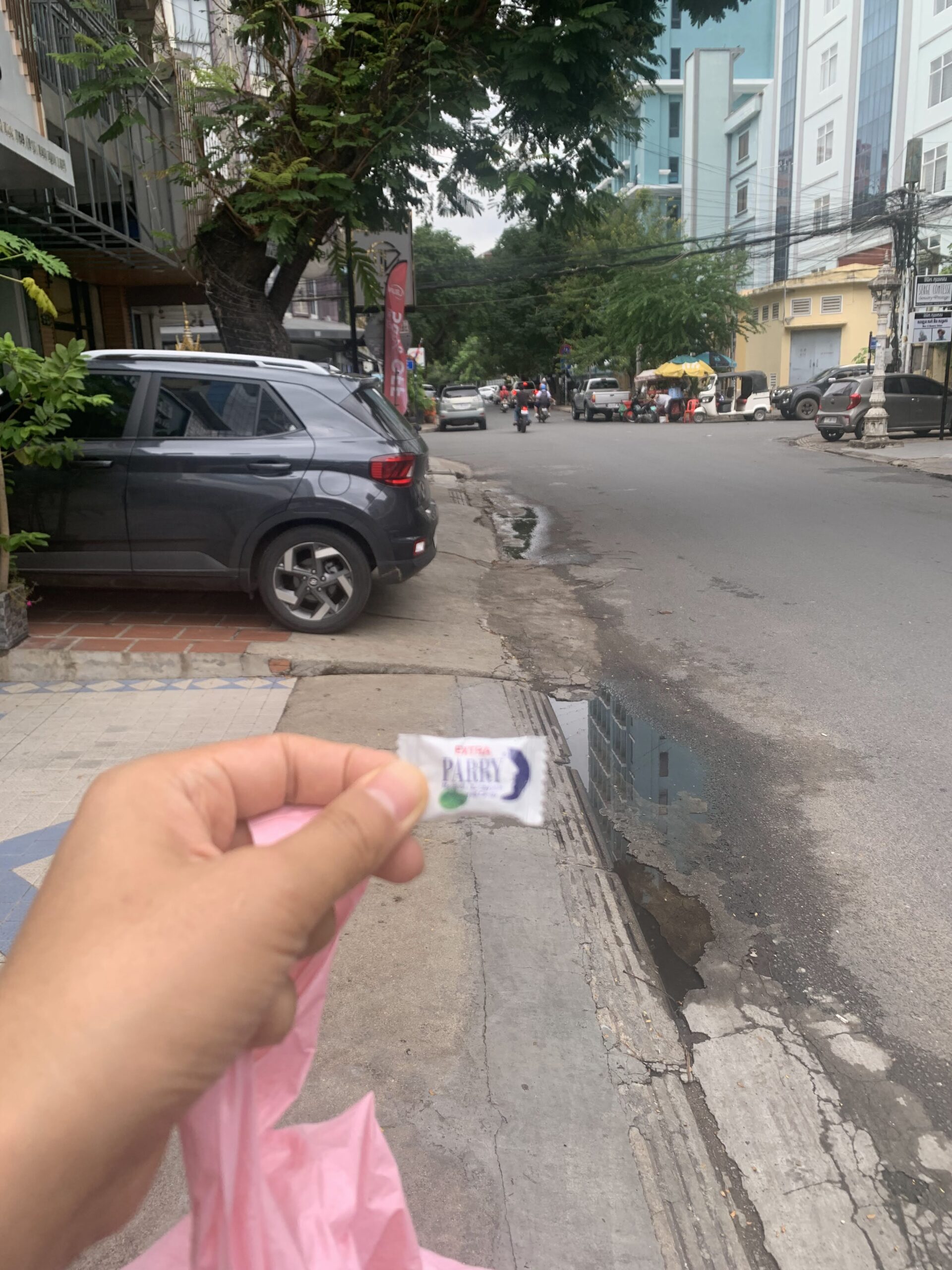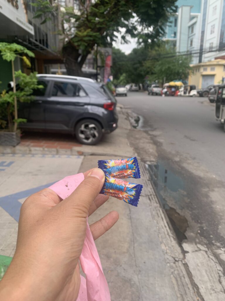 そして、ゴミ拾い中に、あめ玉拾いました♪カンボジアで、未開封のあめ玉を拾えるとは♪♪♪