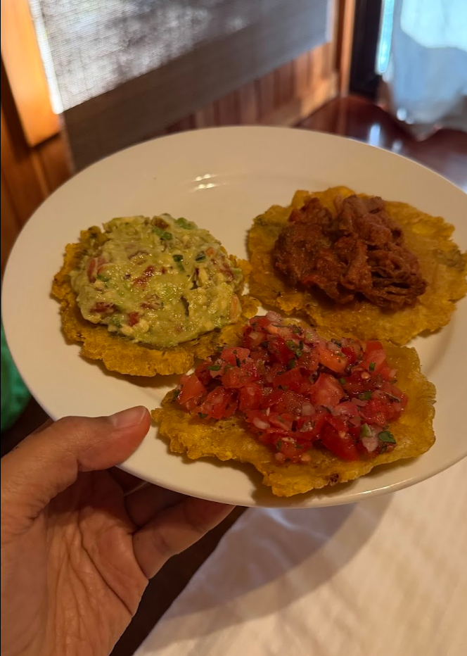 かりかりの生地の上に、アボカドソースなどがのっている、美味しいおやつをいただきました♪