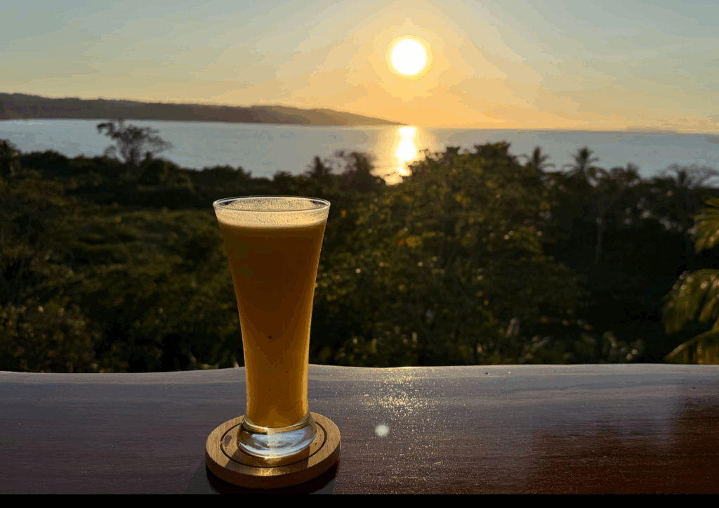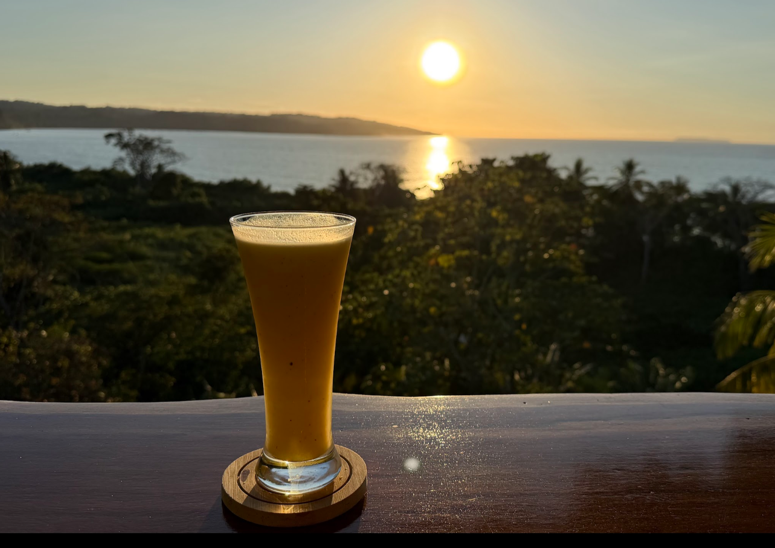 フレッシュマンゴージュースをいただきながら、夕日を眺める、ぜいたくな時間♪