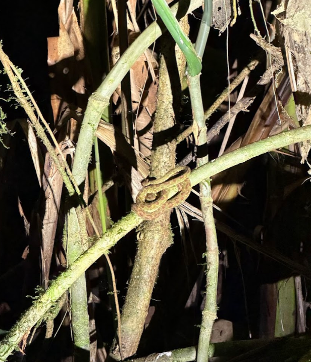 ナイトツアーの見所は、ジャングルの中に生息している夜行性の動物の生態を見るコト。日本では見られないカラフルなカエル、毒がえる、蛇、大きなクモなどが有名です。