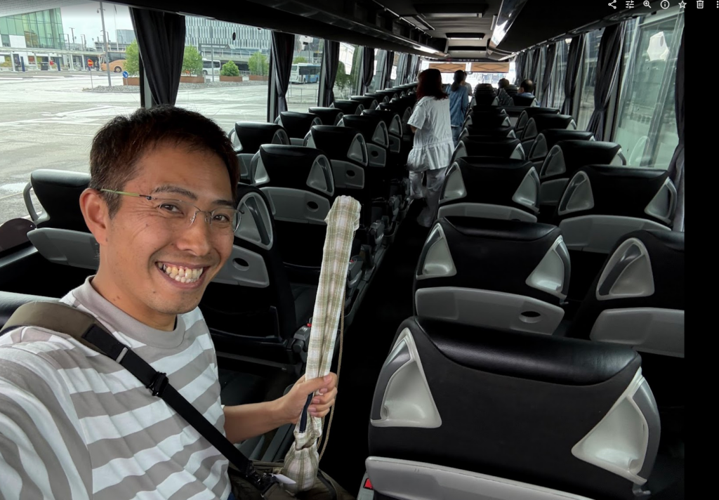 さて、ヘルシンキ空港から、フィンランドのポルボーという街へ向かいます♪ 50人乗りのバスに乗客わずか6人(笑)。1人で8席独占できちゃいます(笑)。