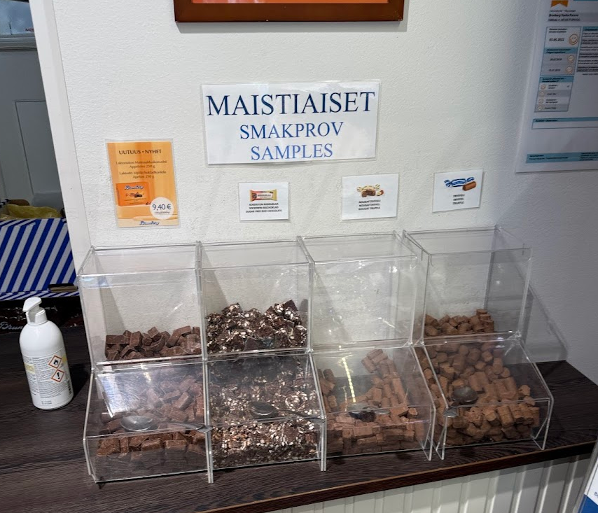 試食してみたら美味しいので、ドッサリとチョコレートをお土産で買いたいところですが、北極へ向かう飛行機の重量制限が非常に厳しく、2パックだけで打ち止め(笑)。