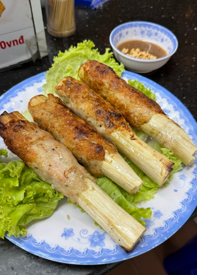 サトウキビの茎に、エビのすり身をまきつけた、チャオトム。600円。
