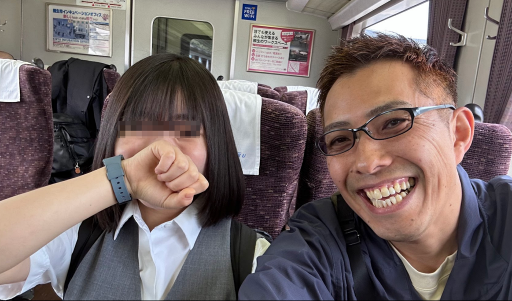 たまたま、アメリカへ行く日の電車と、次女の通学が同じ時間だったので、中学三年生の次女と一緒の電車に乗りました♪ 次女は、中学に進学して2年2ヶ月で「特急りょうもう号で出勤する」という夢を叶えました(笑)。