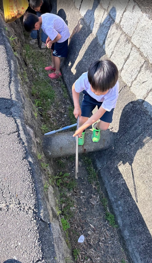 ゴミを探して、水のない排水溝に入る少年たちもいました♪ そして、ばっちりゴミをつり上げていました(笑)。