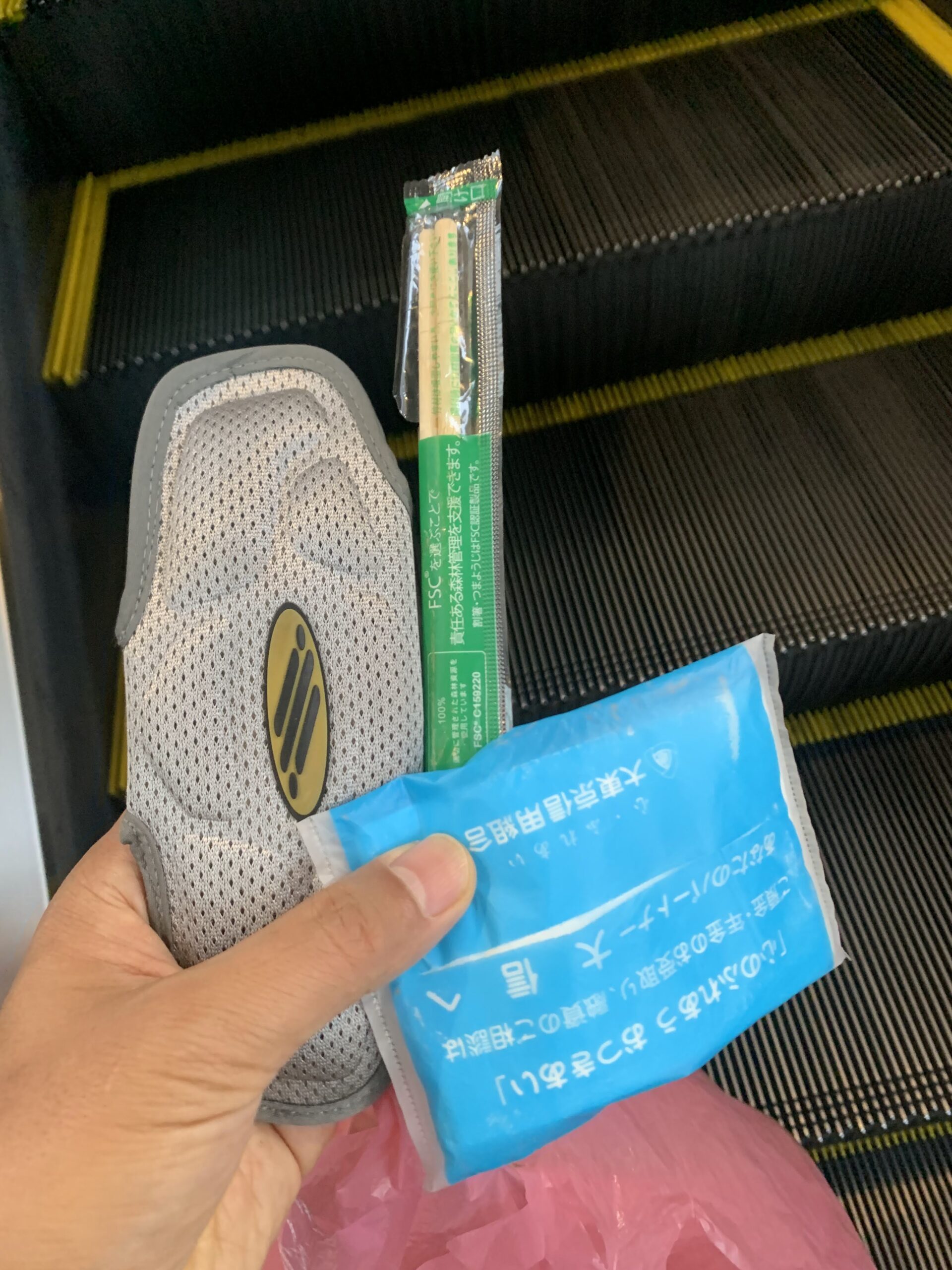 ポケットティッシュに、新品未使用のわりばしに、メガネケース♪このメガネケース、ソフトでなかなか使い勝手がいいですね♪ということで、私の私物にさせていただきました♪所有者の方がいたら、いつでもお声かけくださいね♪いつでも返却します♪