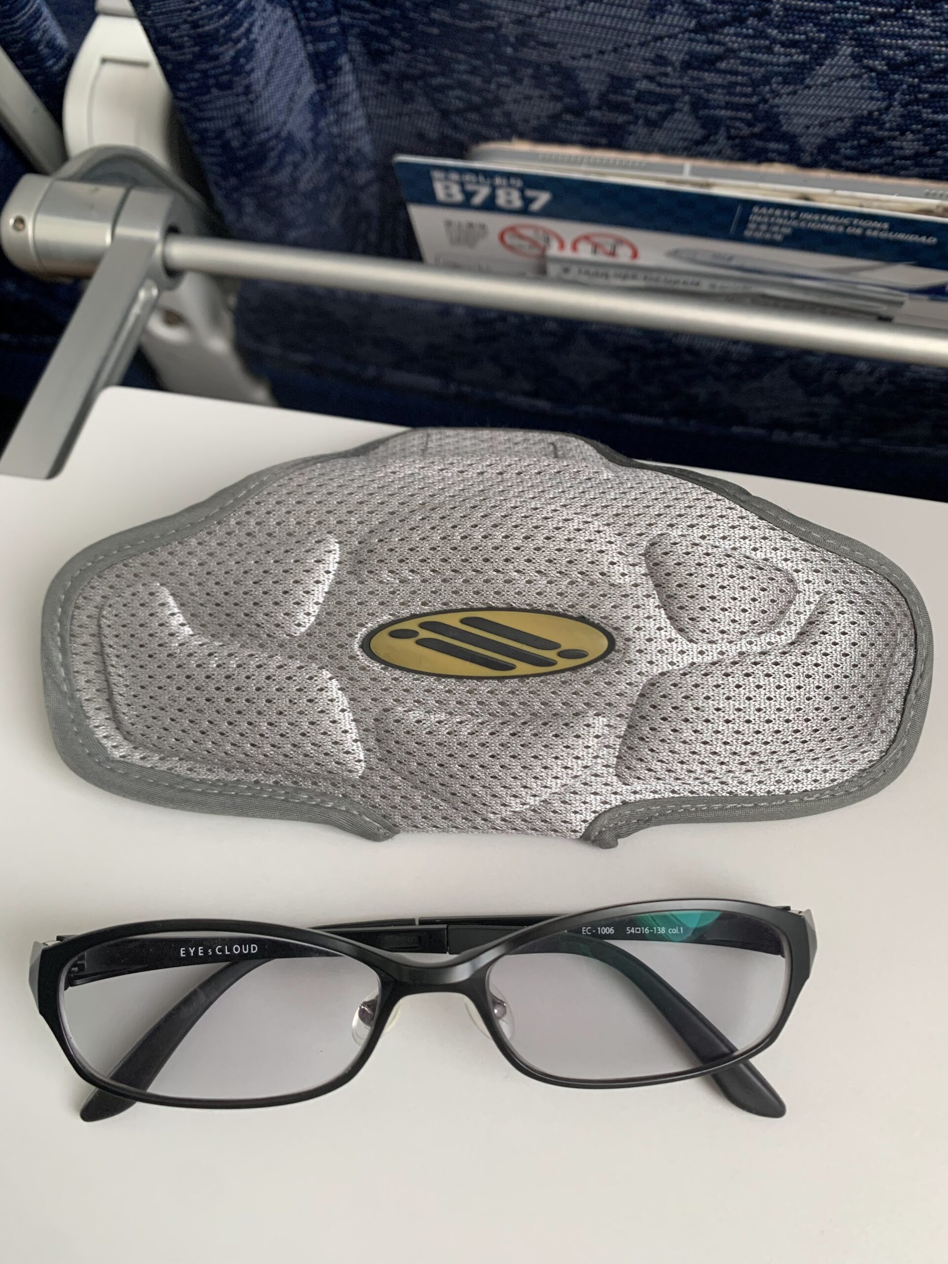 早速、広島に向かう飛行機の中で、メガネをケースに入れて遊んでいました♪