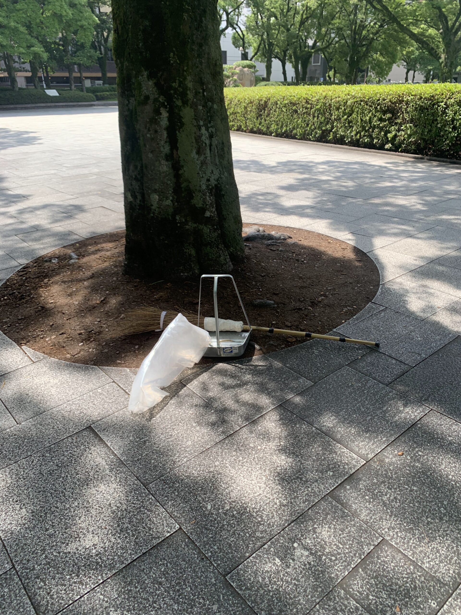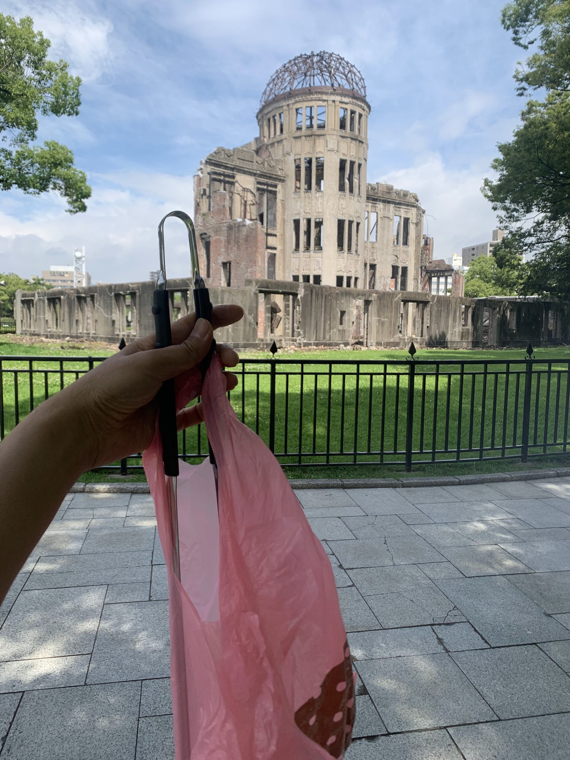 原爆ドームをグルリと回りながらゴミ拾い♪ゴミが少ないなあと思ったらバッチリ清掃員の方がいらっしゃいました。