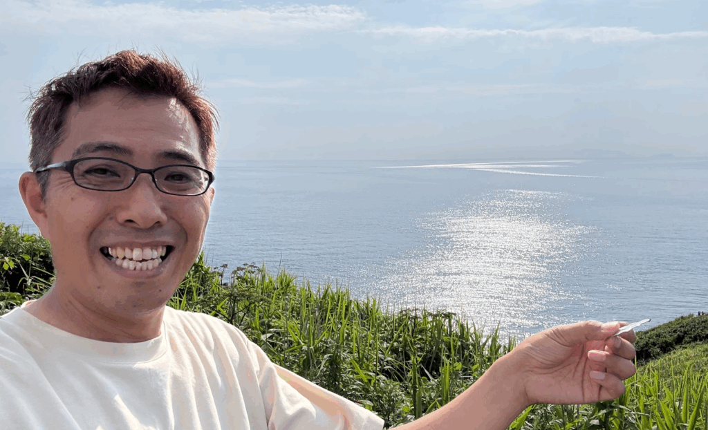 灯台には登らなかったけど、灯台の駐車場をゴミ拾いはしていきます♪ ゴミ拾い仙人としての矜持(きょうじ)です(笑)。