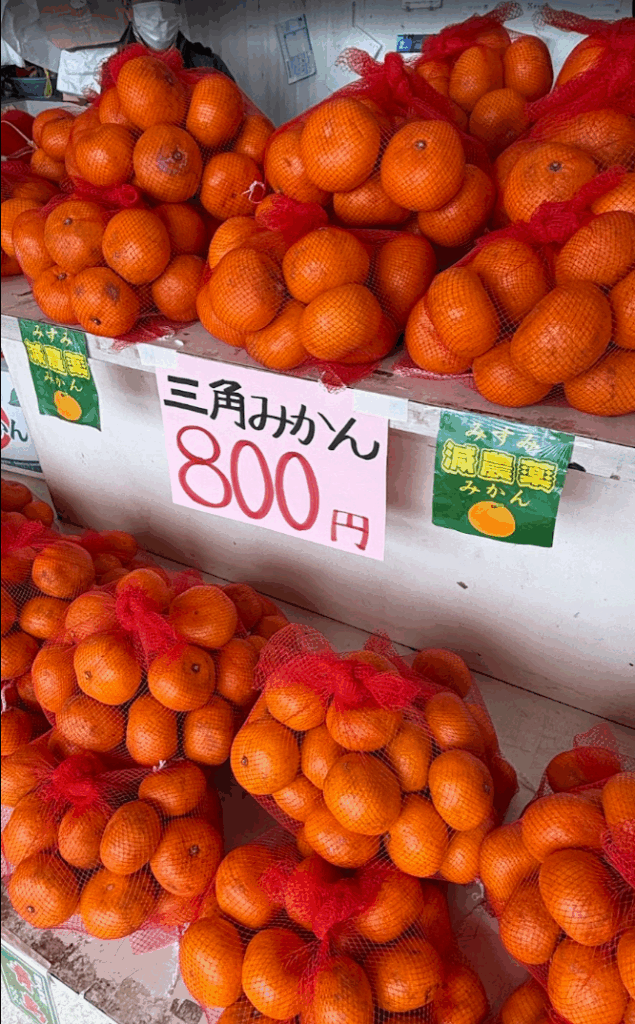 ここで売っていたのは、「三角(みすみ)みかん」。このあたりの、地名が「みすみ」というそうです。