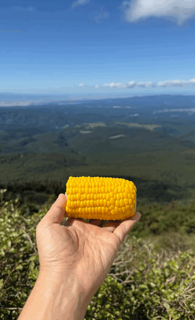 せっかくなので、八甲田山ロープウェイに乗って、ロープウェイ山頂駅のベンチで、雄大な青森県の景色を見ながらいただきました♪ プチプチ食感が衝撃的です! 一生に一度は食べてみたいとうもろこしかも♪ 一本350円♪ これが私のお昼ご飯です♪