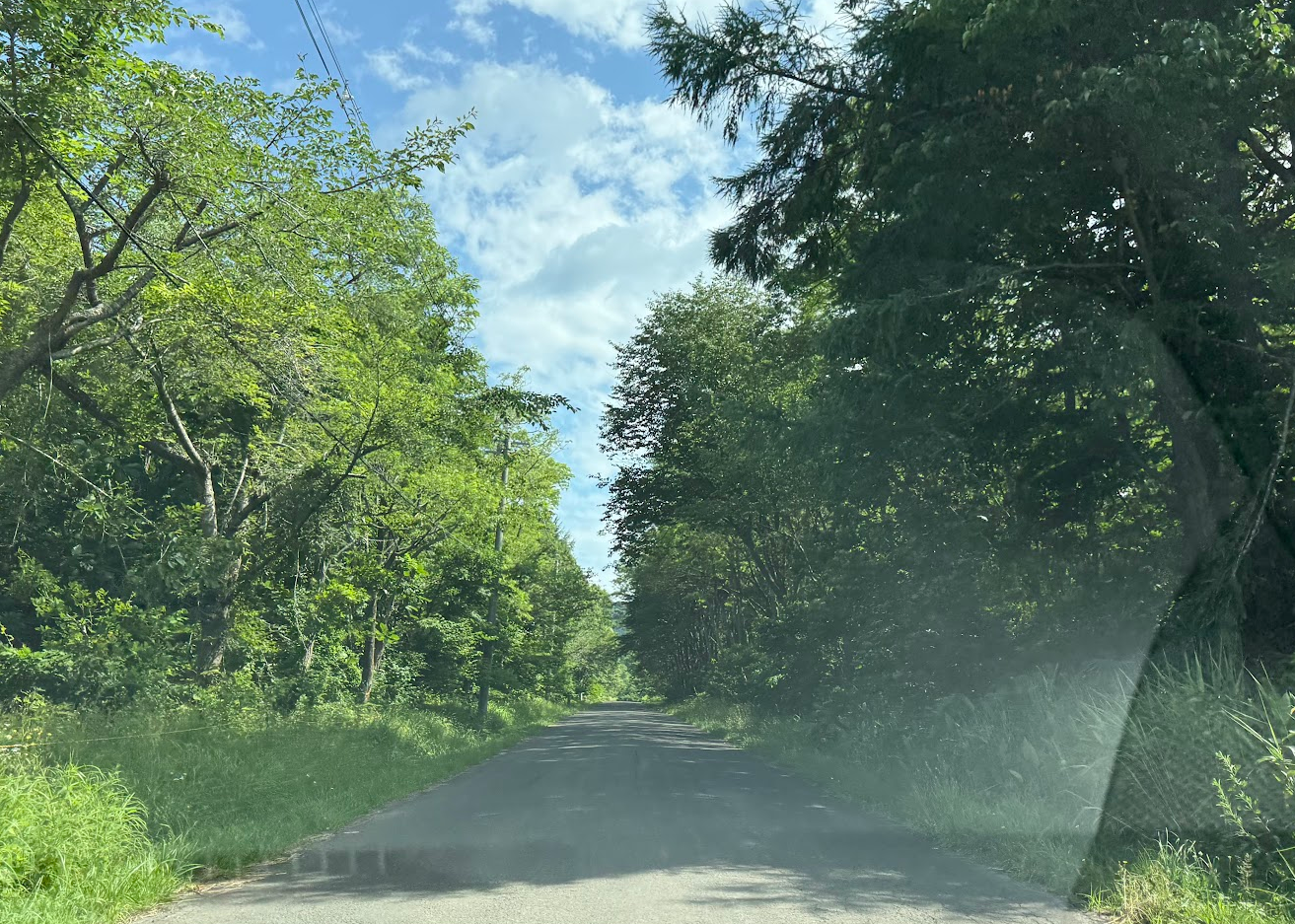 緑がまぶしいクネクネ道をひたすら上っていきます♪