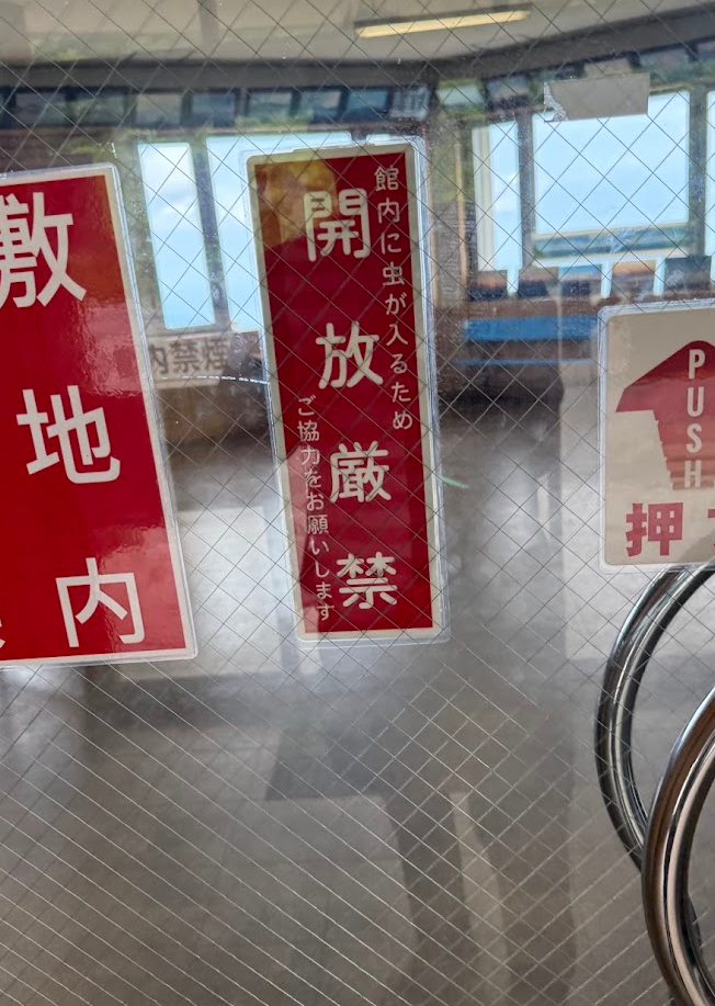 虫がたくさんいるので、「開放厳禁」の札が貼ってあります。ちなみに、私も車のドアを開けて、荷物の出し入れをしていたら、あっと言う間にハチさんたちが数匹入ってきてプチパニックになりました(苦笑)。車のドアも窓も開放厳禁です(苦笑)。