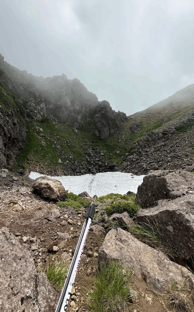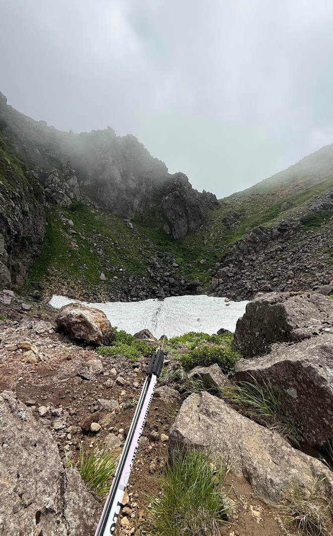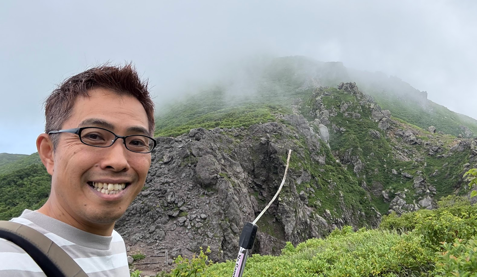 雲がかかった岩木山山頂をバックに、9合目ゴミ拾いです♪