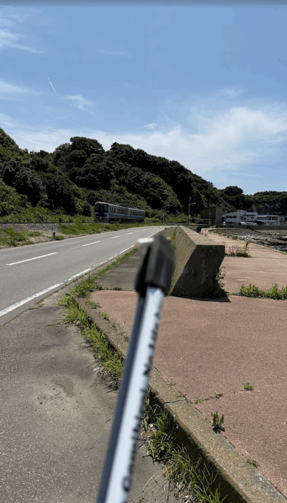 ちょうど、五能線の列車が通りました♪