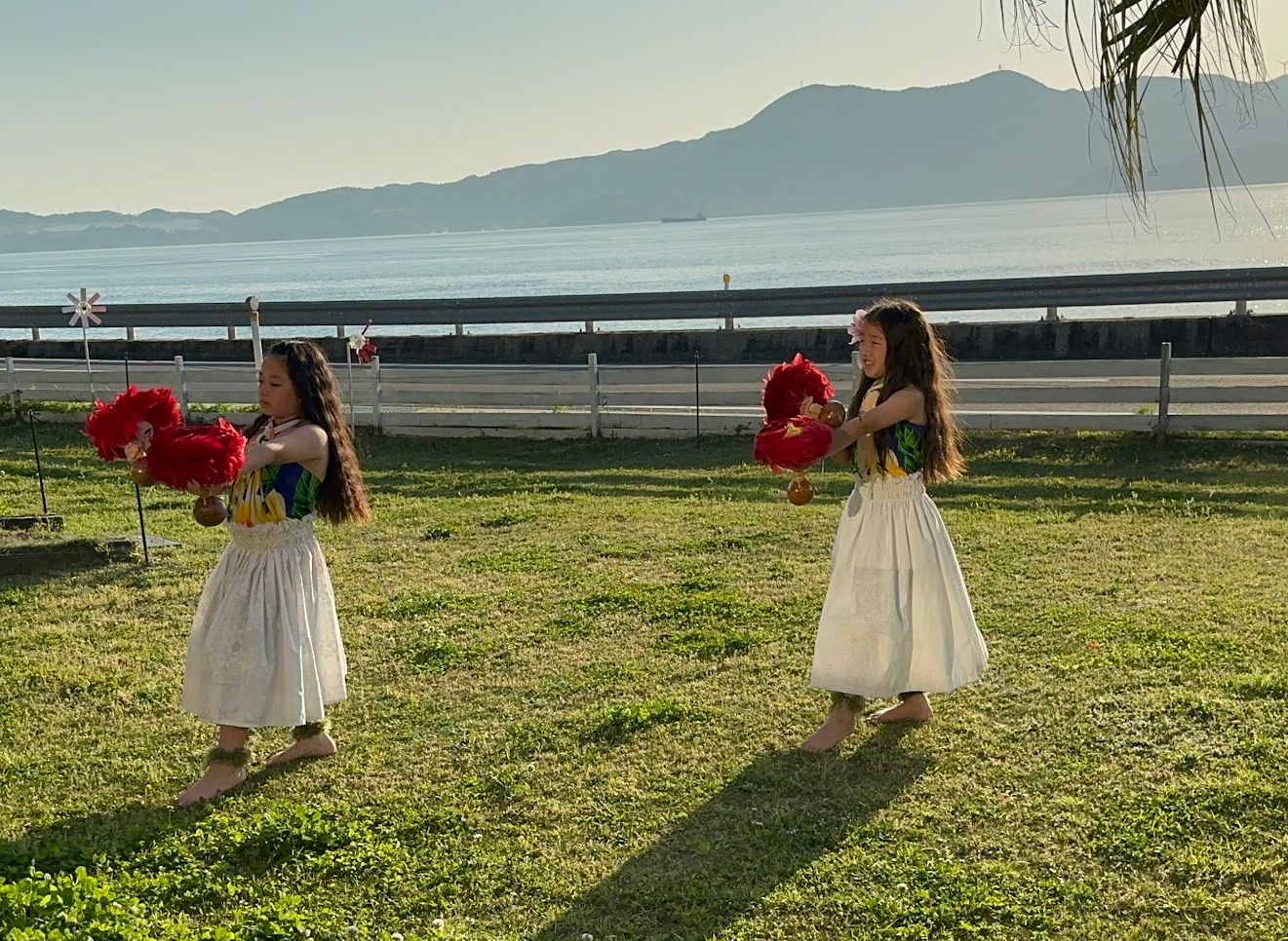 ここで、サプライズのフラダンスショー♪ 私を呼んでくれた笠原颯愛くんが、「仙人にぜひ見て欲しい」ということで、小学校の後輩のフラダンスの女の子たちを呼んでくれたそうです♪