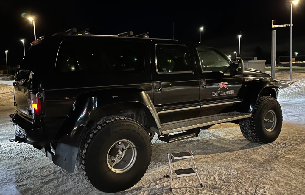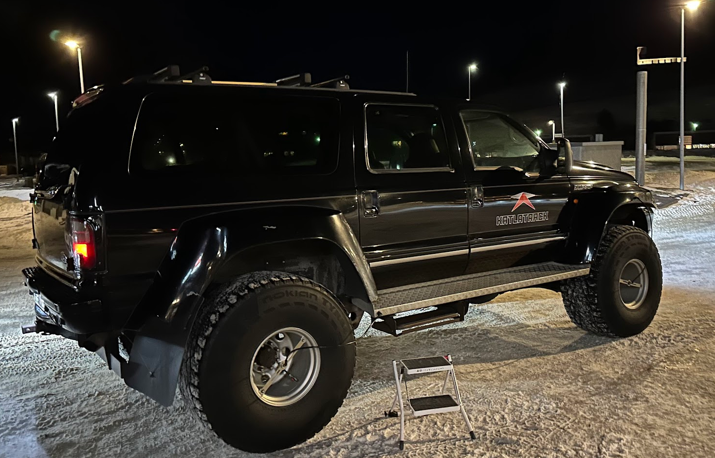 帰り道にすれ違ったスーパージープ。道無き道を進んでいます。雪が多いと轍も消えるので、時々、プロでも迷子になりそうになるとのこと(苦笑)。