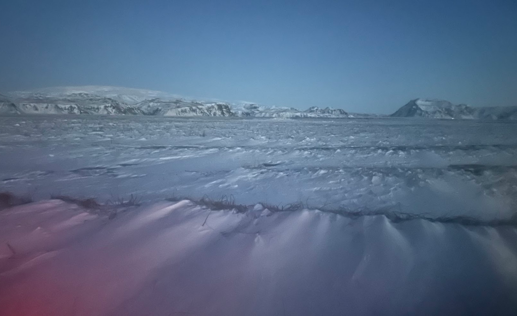 50分の荒野の雪原ドライブのあと、到着したところは、別世界! 朝日を浴びて、幻想的な景色です♪
