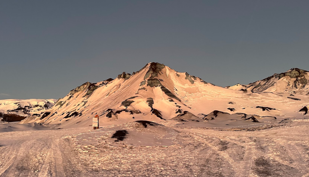 さて、このジープが通る道がすごい。道なき道を通っていきます。雪原をこのジープで超えて、氷河まで向かいます。