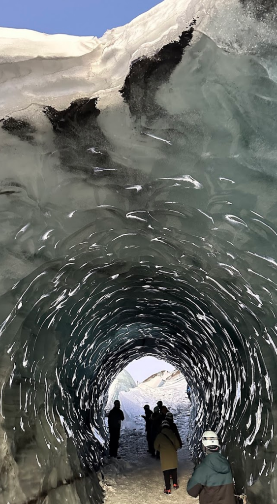 これが氷の洞窟です♪ なんと、自然にできた洞窟なんだそうです。そして、この洞窟は、毎年、毎月、形を変えるので、この洞窟は、翌年にはもうないそうです。今年限り、今月限りの一点ものです♪