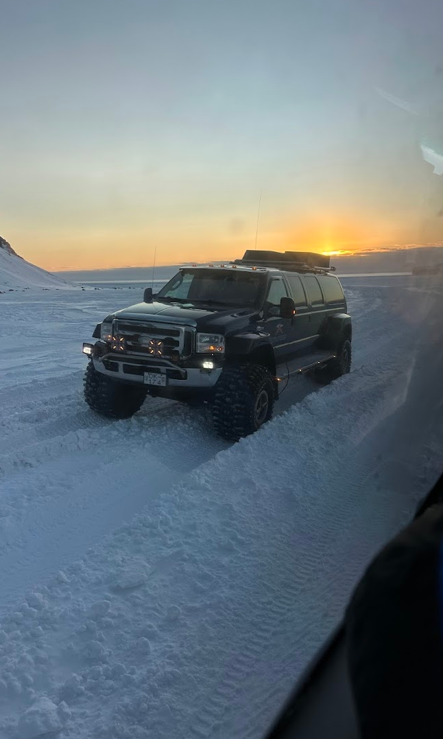 このスーパージープに乗って、自然にできた氷の洞窟に行きます♪ ミールダルスヨークトル氷河のアイスケーブに向かいます♪