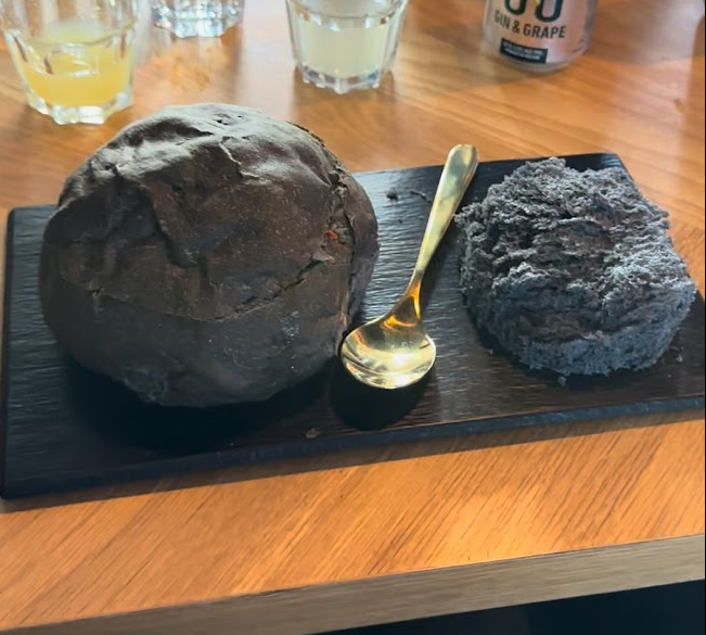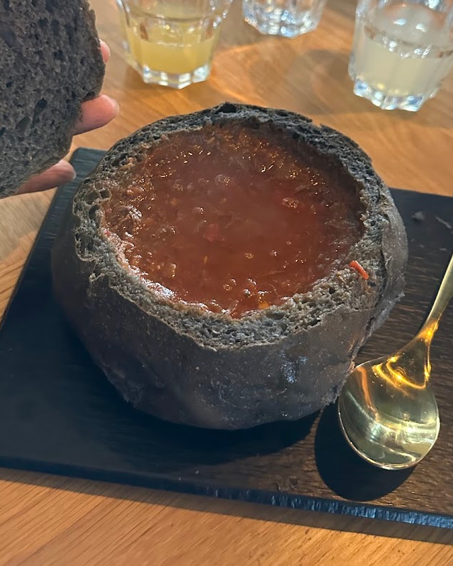 これが、溶岩を模した、溶岩スープ♪ 溶岩の部分はパンです。右側は、くりぬかれたパンです。