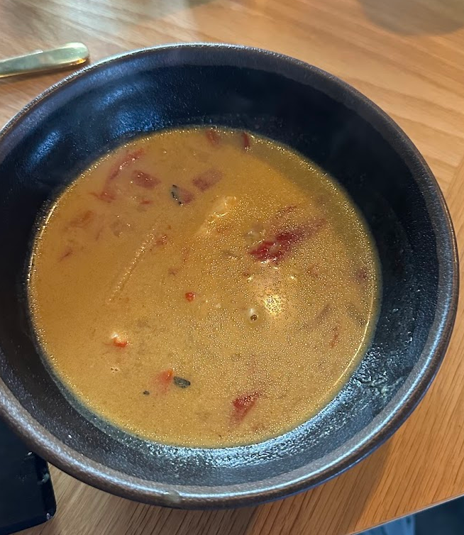 お代わりは一杯まで無料♪ 味変して、おいしくいただきました♪ 一杯目はちょっと辛いスープ。二杯目はタイカレーのようなスープ。どちらも美味でした♪ これでお一人様、3800円。高いですね♪