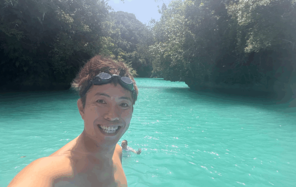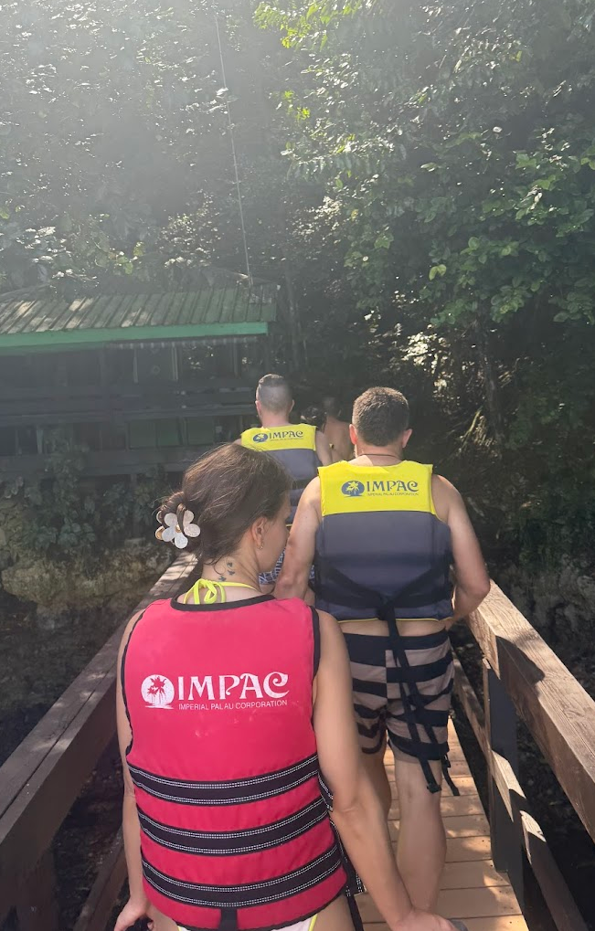 ジェリーフィッシュレイクという場所に来ました。ここは、オレンジ色のクラゲに囲まれて写真が撮れるという映えスポットです。