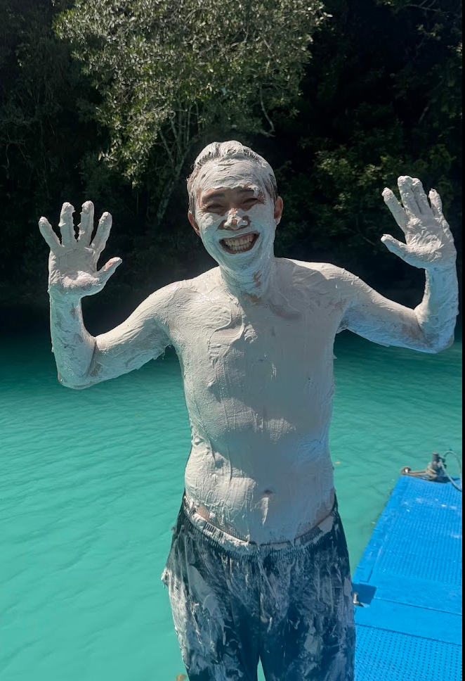 ツアーガイドのジュンキさんが、泥を海底から掘り出して調達してきてくれました♪ ちなみに、このガイドさん、なんと、日本の厚労省のプロジェクトで、ペリリュー島での戦没者の遺骨発掘をボランティアでされているそうです。ツアーの合間に、彼から、パラオのよもやま話をたくさん聞くことができました。