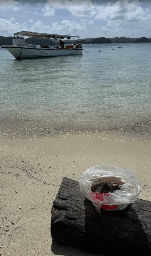 食後は美しいパラオのビーチをゴミ拾い♪
