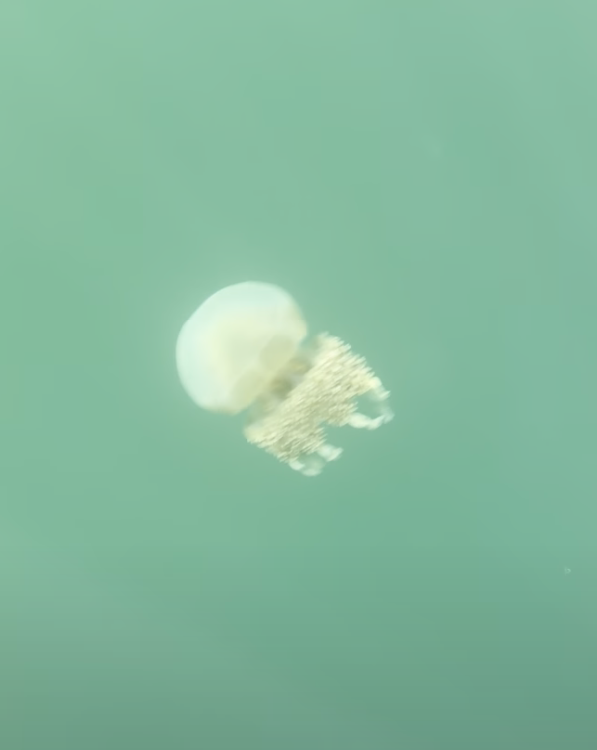 私は、クラゲさんを見るのは、すぐに飽きてしまったので、後半は池の上をライフジャケットをつけてプカプカ上を向いて目を閉じて浮かんでいました♪ まるでお母さんの胎内の羊水の中にいるような気分になって、懐かしい不思議な思いになりました♪ 海の上では、波にさらわれたりするので、安心してプカプカできませんが、人が少ない大きな池の中なら安心してプカプカできます♪ クラゲさんを見るよりも、こちらの「羊水体験ツアー」のほうが、おすすめのアクティビティです(笑)。