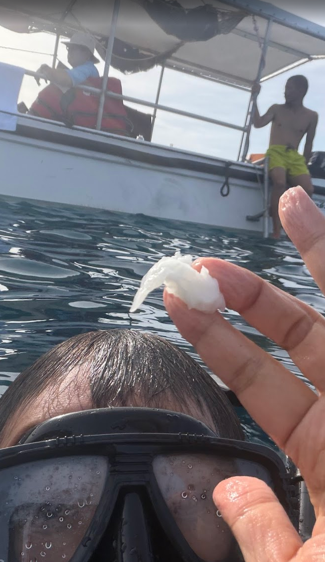 シュノーケリングしながら、海水に落ちているゴミを拾いました♪ 濡れティッシュです。ちなみに、ナポレオンフィッシュも見るコトができました♪