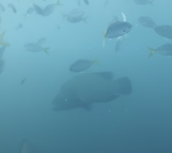 別の海でサメも見るコトができました。コバンザメが映っています。大きなサメのおかげで、コバンザメは、食べ物のおこぼれがもらえたり、寄生虫を食べたり、身を守れたりするそうです。