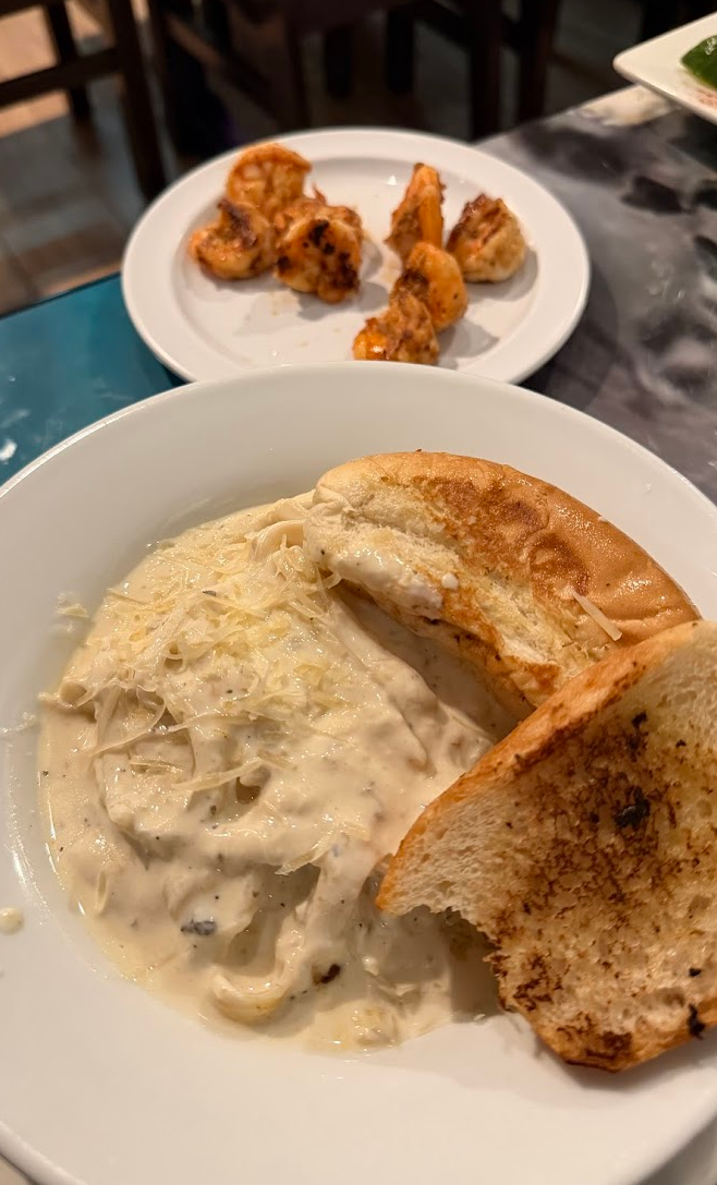 エビのパスタなのに、別皿で来るところが面白い(笑)。ベリーズは物価が、ビックリするくらいに高く、このレストランで1万円超え(苦笑)。