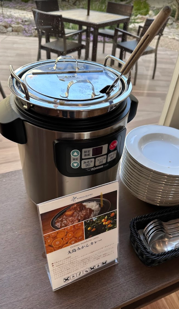 朝食付きのプランだったので、自慢の朝食を少しだけいただきました♪ 「みかんカレー」がツボでした(笑)。みかんの酸味が絶妙にはいったカレーです♪