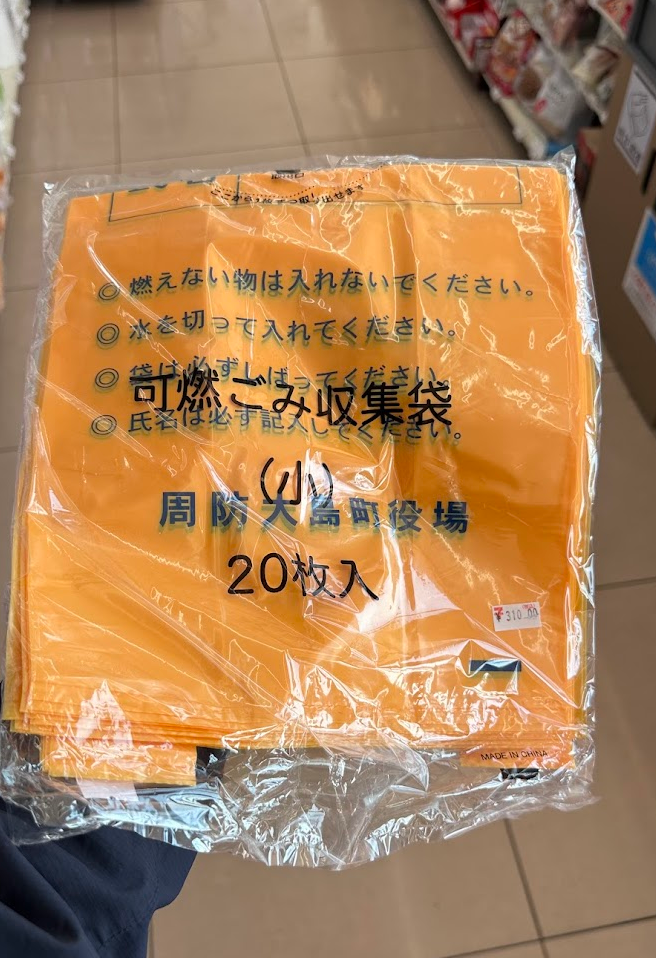 ここで欲しいものゲット♪ 周防大島町のゴミ袋♪ ばっちりみかん色です♪ 私の唯一のコレクションがゴミ袋コレクション(笑)。