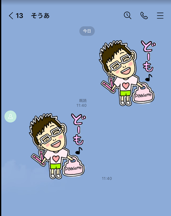 近所の、颯愛くんイチオシのうどん屋さんで、颯愛くんの家族と食事をしながら、颯愛くんとLINE交換♪ そしたら、私の似顔絵スタンプを使ってくれていました♪ 感謝感激です♪