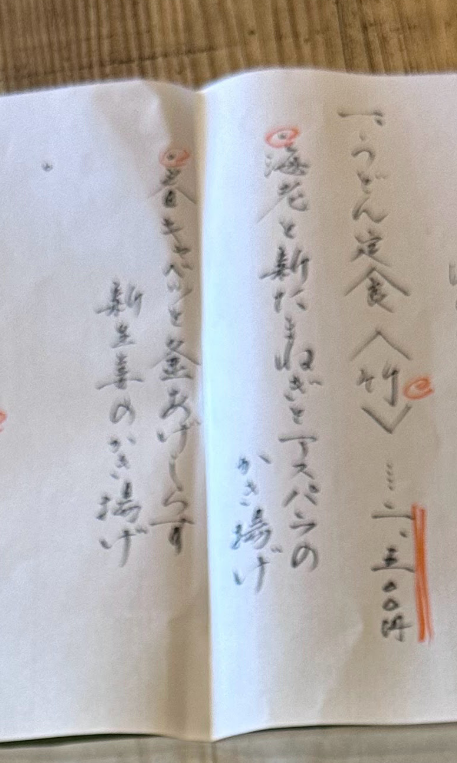 定食では、かき揚げがどちらか一つしか選べないのですが、Unlockの私は、「あんまりおいしそうなので、かき揚げを二つください♪ もちろん、単品の料金を払いますから♪ そうそう、梅定食についている温泉卵もつけてください♪ もちろん、その分もお金を取っていいですから♪」と言って、特別メニューにしていただきました♪
