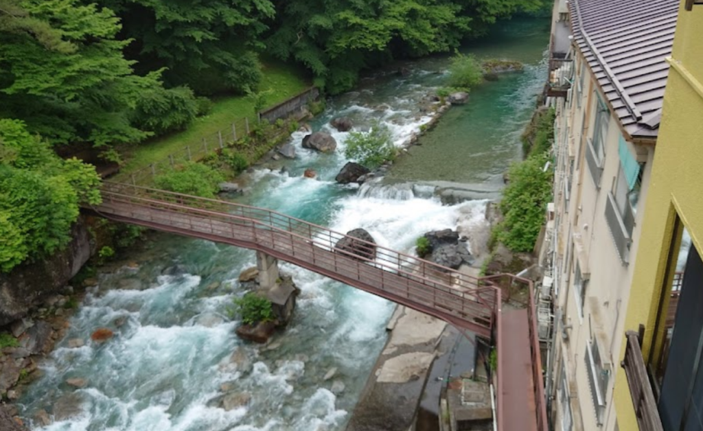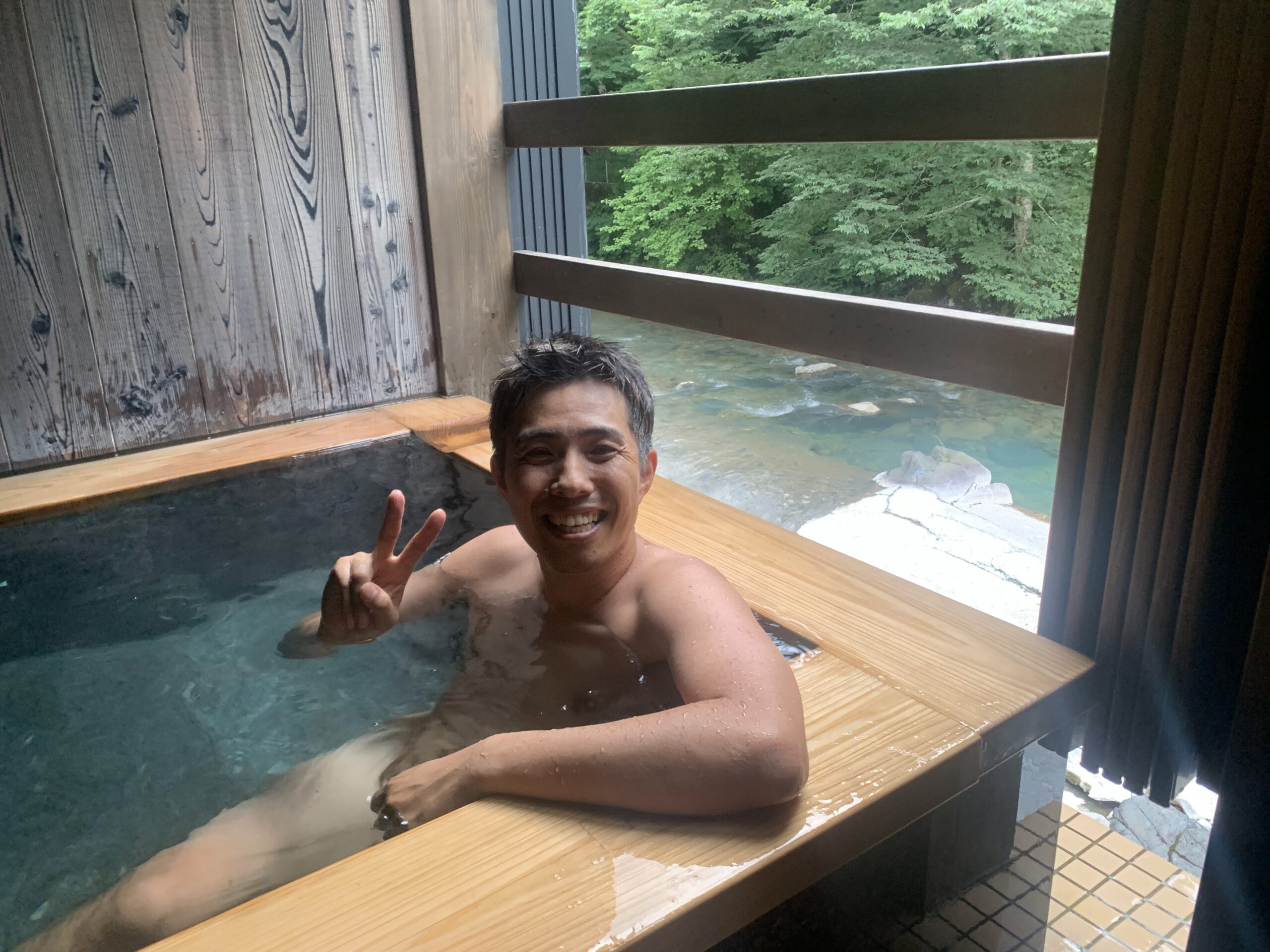 いつの間に三女が私のヌード盗撮写真を撮っていました(笑)渓声の宿いずみや自慢の渓流沿いの半露天風呂です♪
