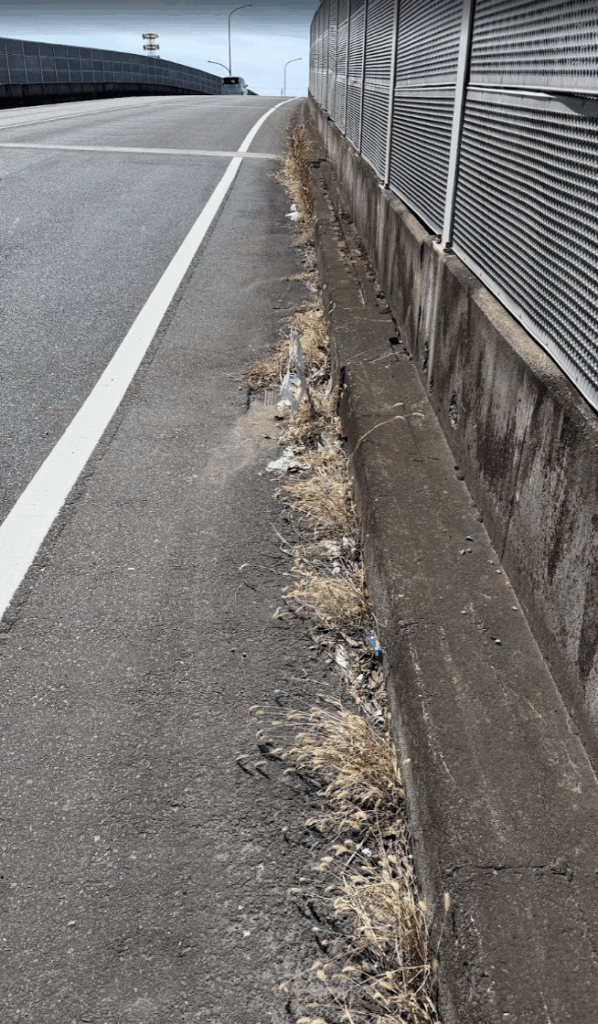 かつて、中学校のまわりをゴミ拾いしていたら、自分の次女の名札を拾うという、まさかのミラクルが起きた場所のゴミ拾い。高架の側道がゴミが多めでした。道路交通量が少な目だったので、歩道がない道を、ゴミ拾いをしてキレイにしておきました。中学校へ感謝を込めて・・・。