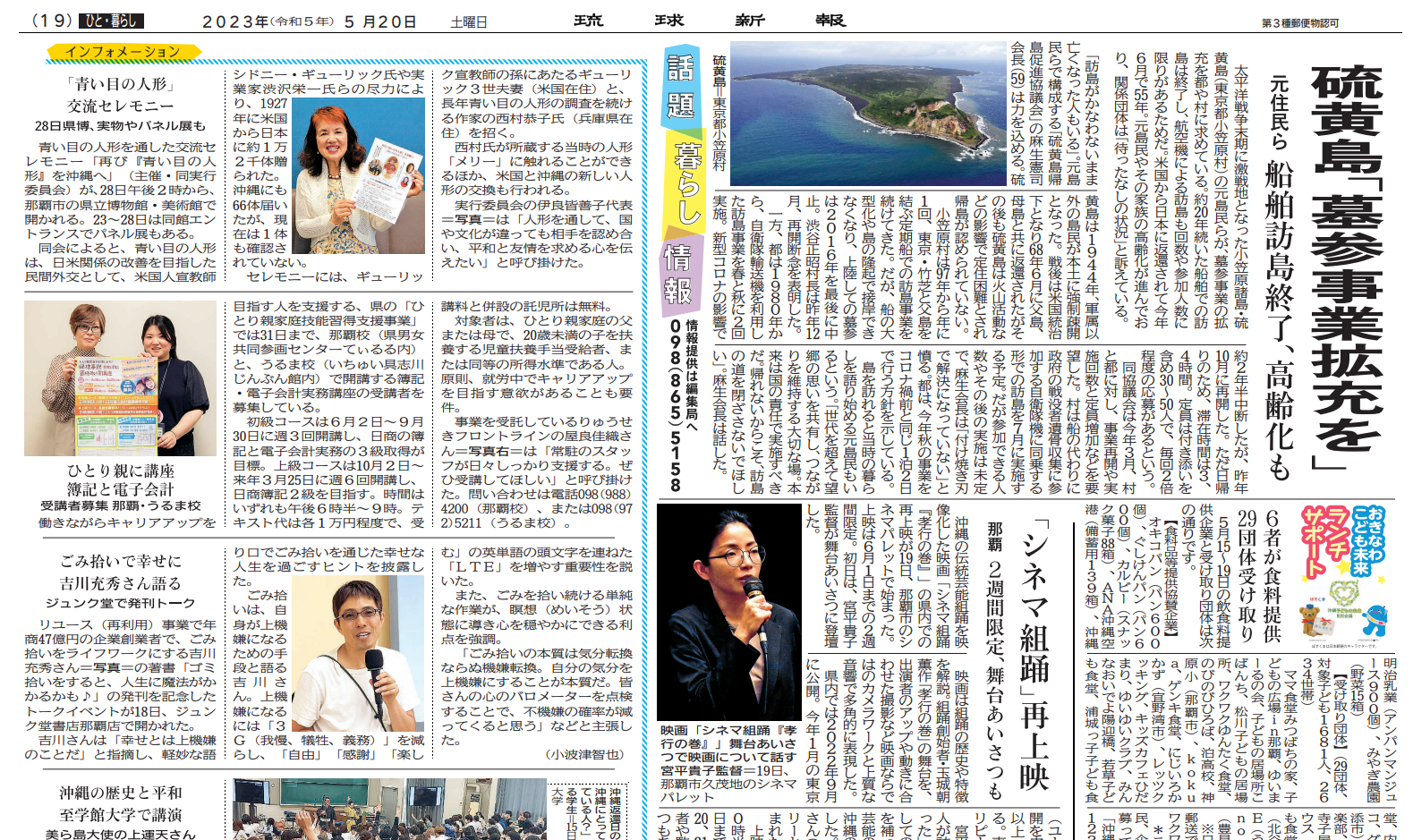 沖縄の二大新聞の記者さんが、5月18日のジュンク堂書店の那覇店のトークイベントにお見えになっていたようです。沖縄タイムスさんと、琉球新報さん♪素適な記事を載せていただきました♪感謝感激です♪