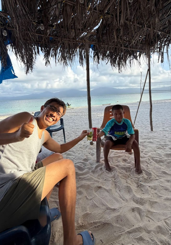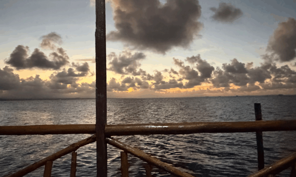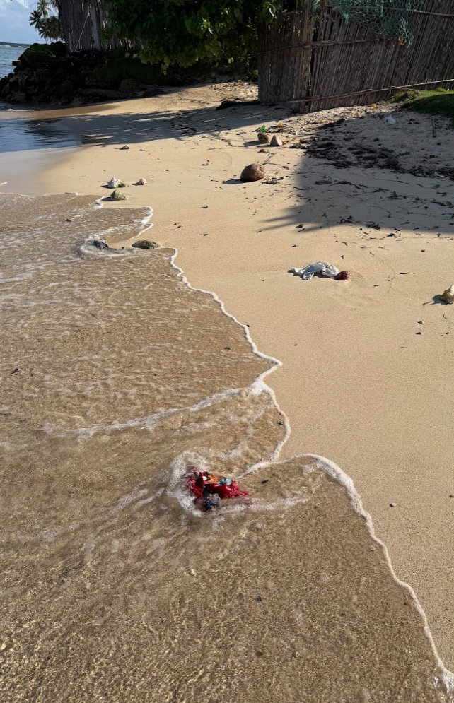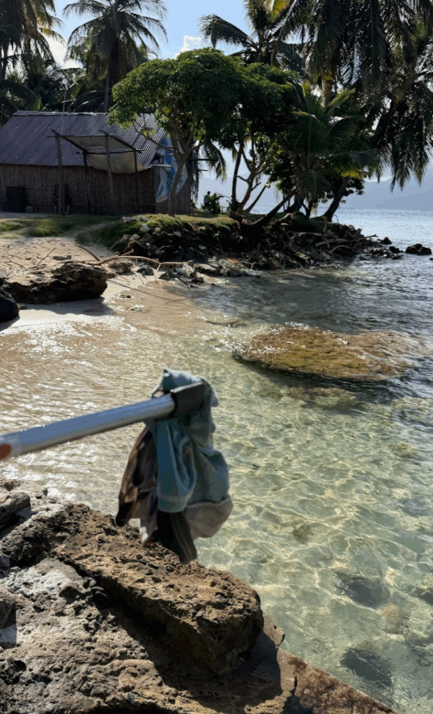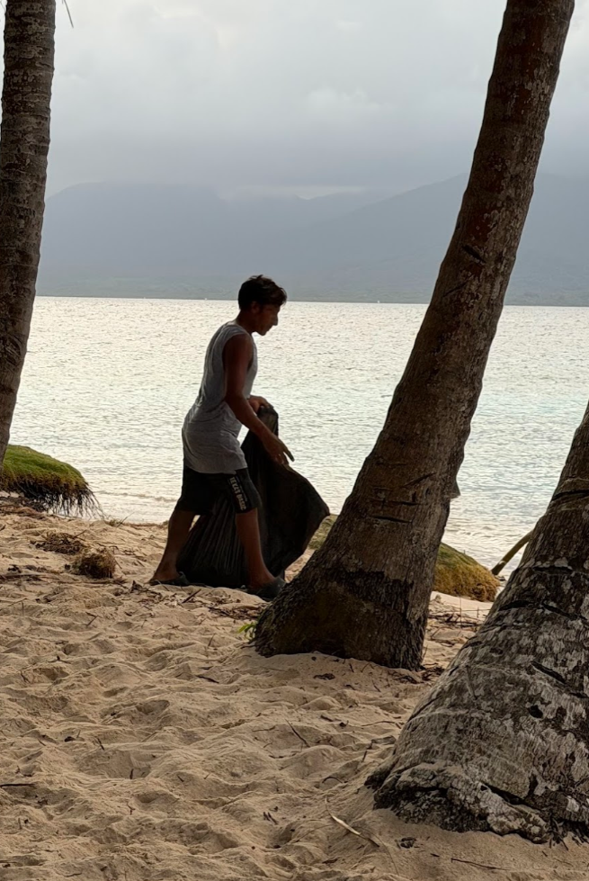 翌朝起きると、海岸線でゴミ拾いをしている地元民のお兄さんが! 私に触発されて、「ゴミ拾いしなきゃ」と思ったのかも(笑)。