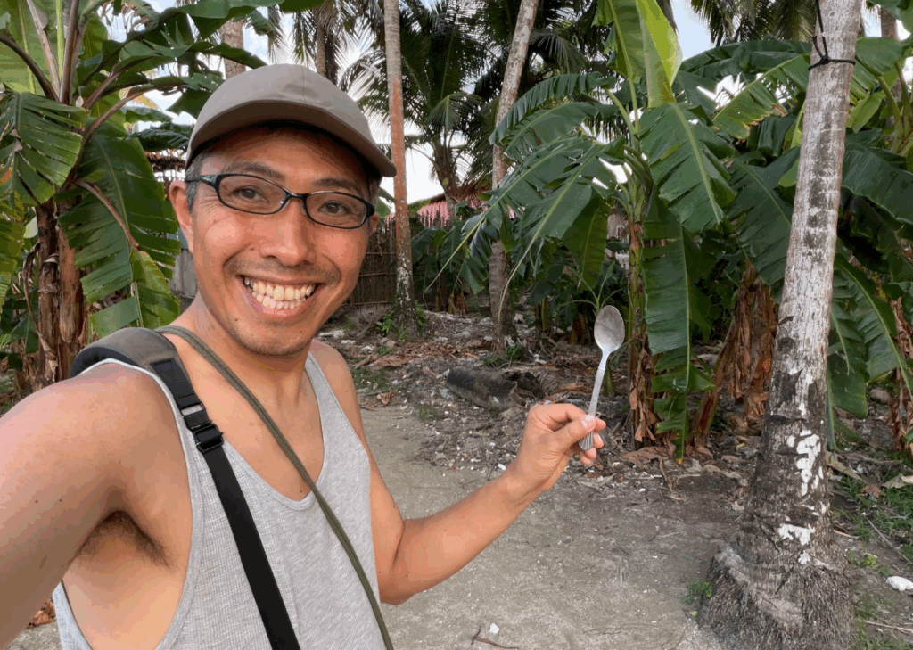 夕方に戻って来て、宿のある島でまたまたゴミ拾い♪ 今度は有価物を拾いました♪ サンブラス諸島のスプーン! キレイに洗って、私のポーチの中にしのばせてあります♪ これから、このスプーンを使うたびに、サンブラス諸島の楽しい思い出に浸ることになりそうです♪ モノを飼うのも素適ですが、拾ったものに意味を見いだして、それを愛でるように使うのもまた素適です♪そして、そんな人生のほうが、ひょっとしたら味わい深いのかもしれませんね♪