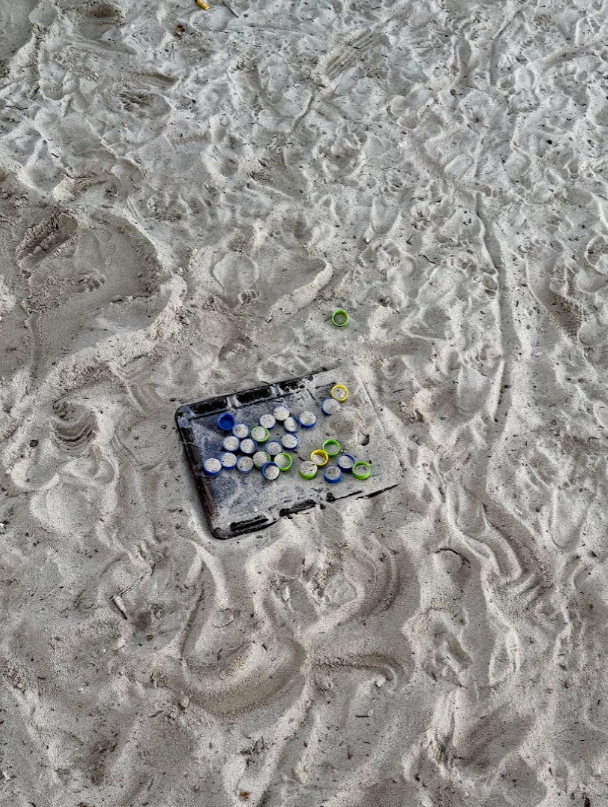 ペットボトルのキャップをあつめて、おはじきのように遊ぶ子どもたち。さすが遊びの天才♪