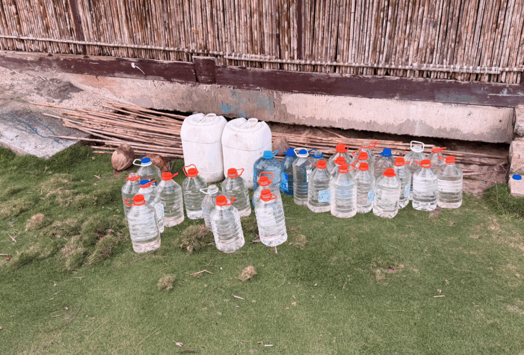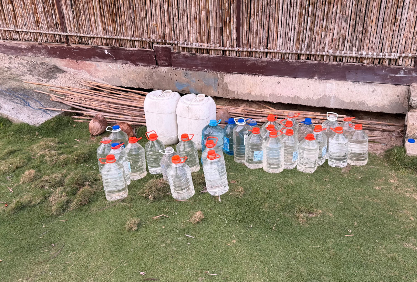 こんなボトルに水を汲んで、島に水を集めてくるようです。