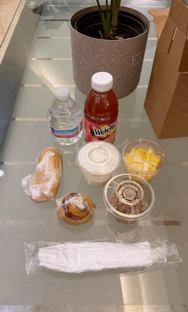 パナマシティから、サンブラス諸島へは朝5時の出発なので、事前にテイクアウトの朝ご飯をホテルの人に言って準備してもらいました♪ 英語では「テイクアウェイ」と言うようです。
