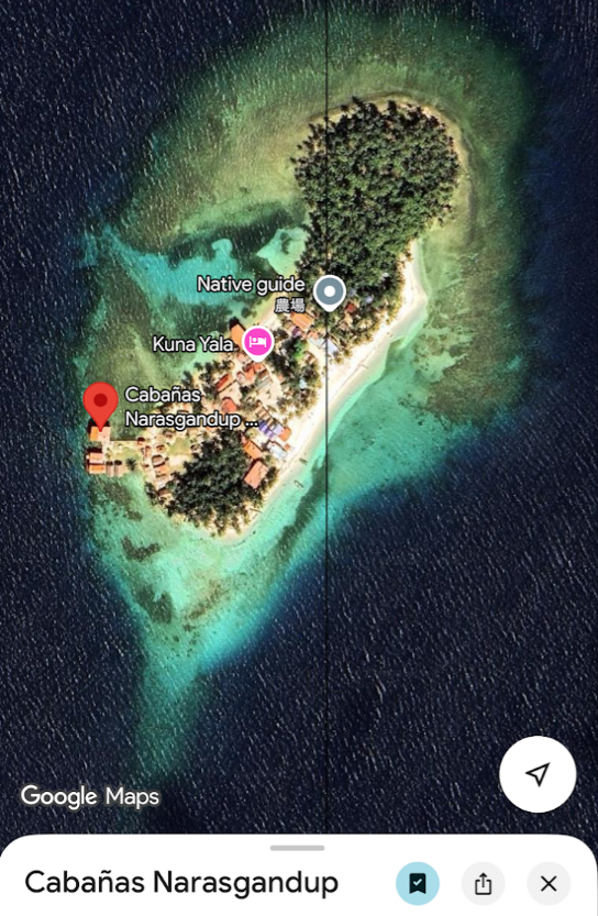 宿のある島に到着♪ 朝5時にホテルを出て、9時47分に到着♪ 5時間近くかけて、サンブラス諸島までやって来ました♪ この島は、宿が二つあって、人口200人の小さな島。30分も歩けば島を一周できちゃうくらいの島です♪