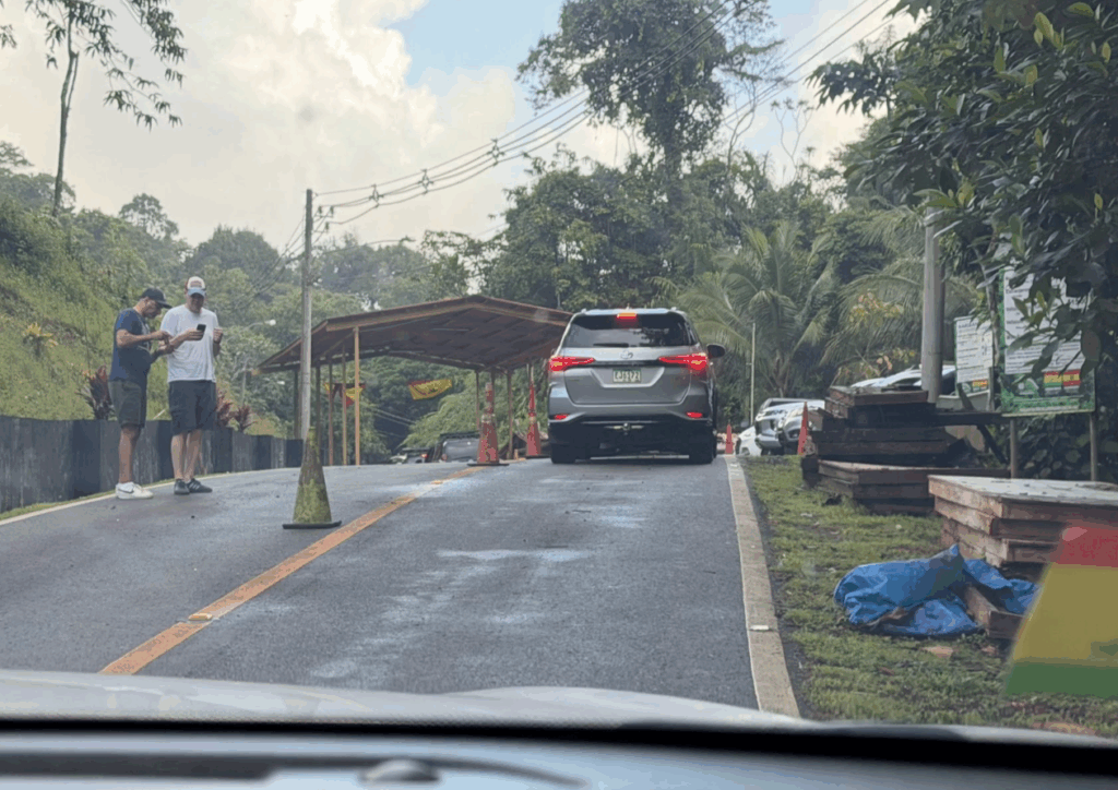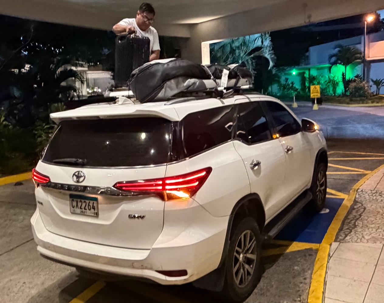 サンブラス諸島のホテルを予約をすると、パナマシティからの送迎も全て手配してくれます。「大きなスーツケースがある」と言うと、「ホテルに置いてきてくれないか?」と運転手さんから無茶振り(苦笑)。結局、車の上に紐で結わえて出発。結わえるだけで15分くらいかかります。運転手さんが嫌がるのもわかります(笑)。